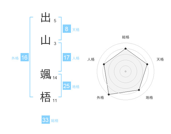 出山 颯梧さんを姓名の画数から五運を鑑定