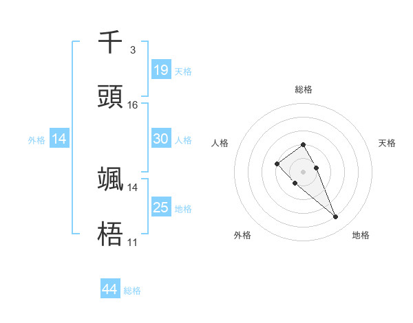 千頭 颯梧さんを姓名の画数から五運を鑑定