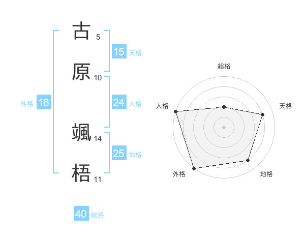 古原 颯梧さんの地格は25画の4点!