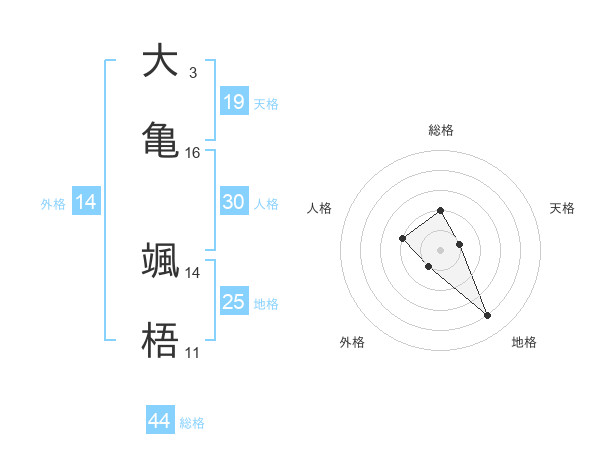 大亀 颯梧さんの総格は44画の2点!
