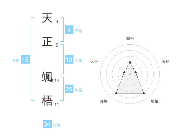 天正 颯梧さんの総格は34画の2点!