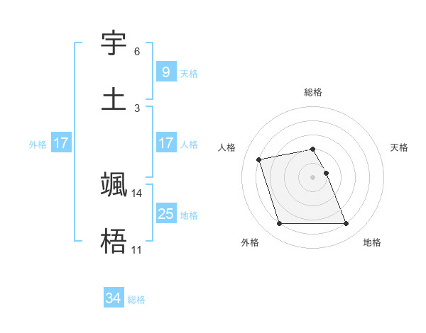 宇土 颯梧さんの総格は34画の2点!