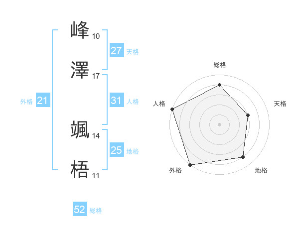 峰澤 颯梧さんの総格は52画の4点!