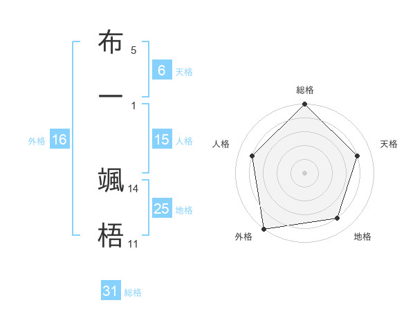 布一 颯梧さんを姓名の画数から五運を鑑定