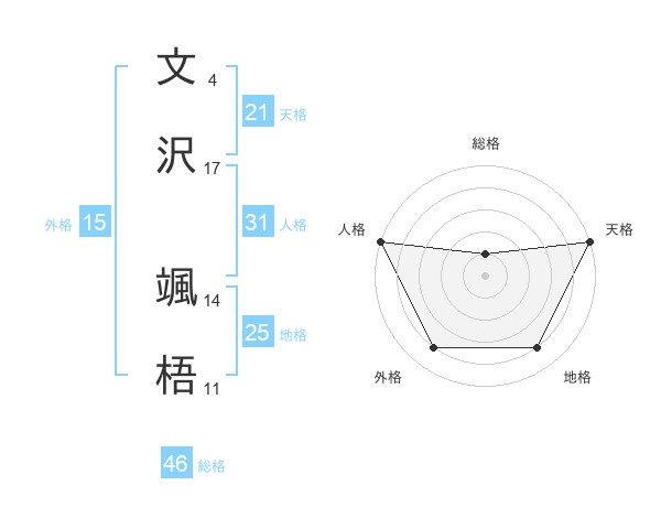 文沢 颯梧さんの天格は21画の5点!