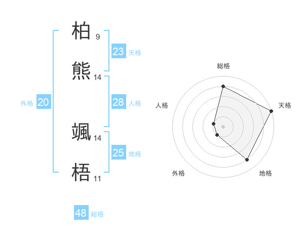柏熊 颯梧さんの総格は48画の4点!