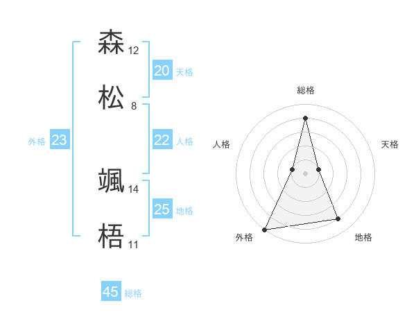 森松 颯梧さんの総格は45画の4点!