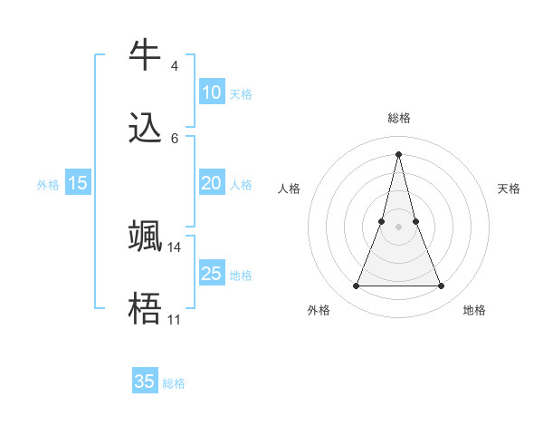 牛込 颯梧さんの総格は35画の4点!