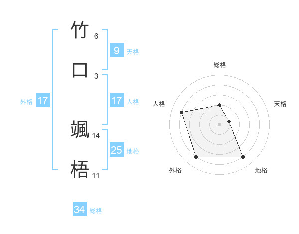 竹口 颯梧さんの総格は34画の2点!