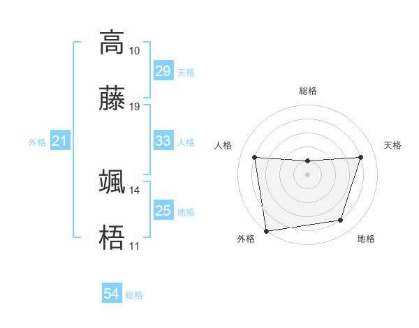 高藤 颯梧さんの天格は29画の4点!
