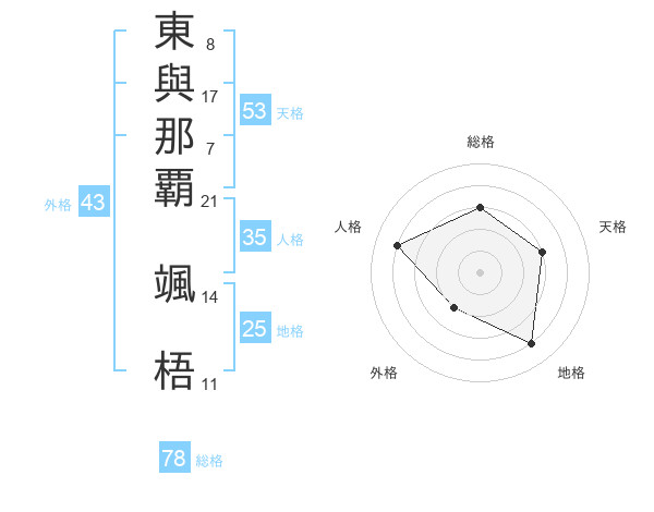 東與那覇 颯梧さんの総格は78画の3点!