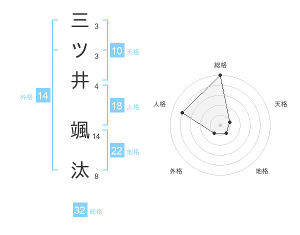 三ツ井 颯汰さんの総格は32画の5点!