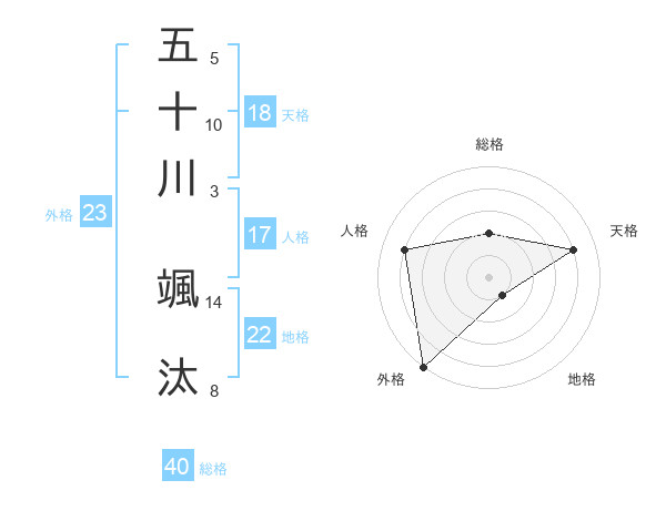 五十川 颯汰さんの外格は23画の5点!