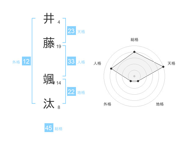 井藤 颯汰さんの総格は45画の4点!