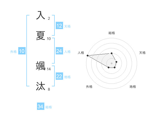 入夏 颯汰さんの総格は34画の2点!