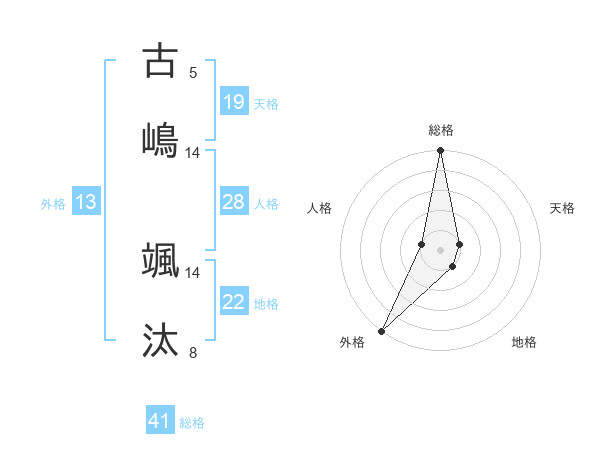 古嶋 颯汰さんの外格は13画の5点!