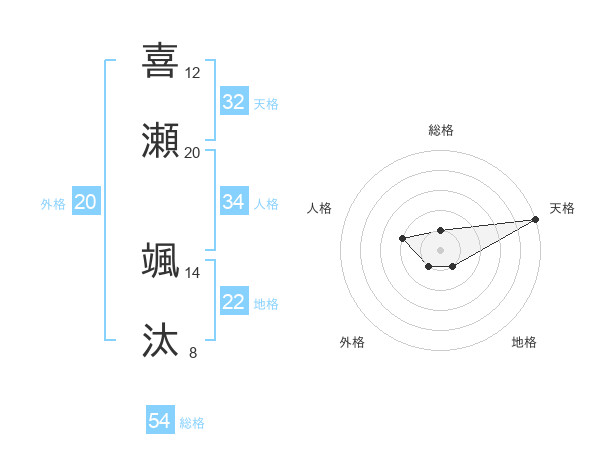 喜瀬 颯汰さんを姓名の画数から五運を鑑定