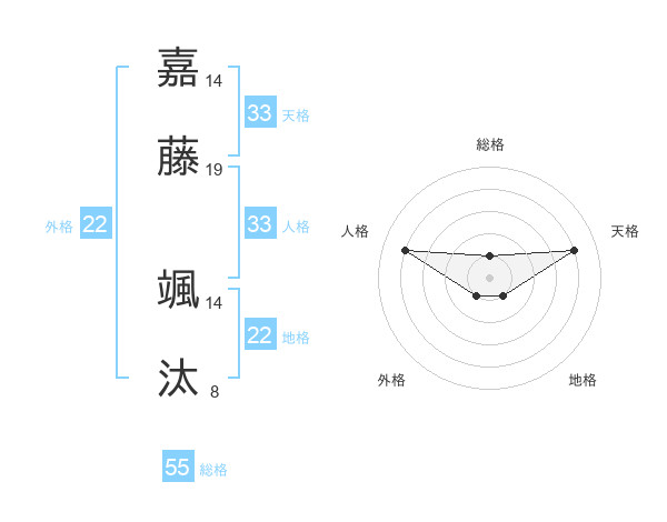 嘉藤 颯汰さんの天格は33画の4点!