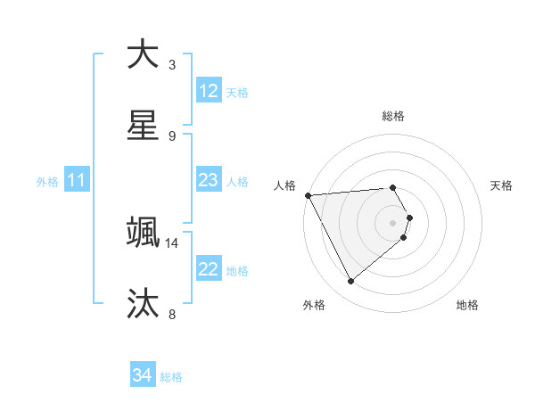 大星 颯汰さんの総格は34画の2点!