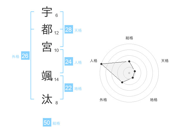 宇都宮 颯汰さんを姓名の画数から五運を鑑定