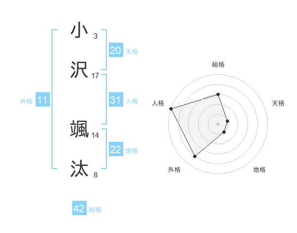 小沢 颯汰さんの総格は42画の3点!