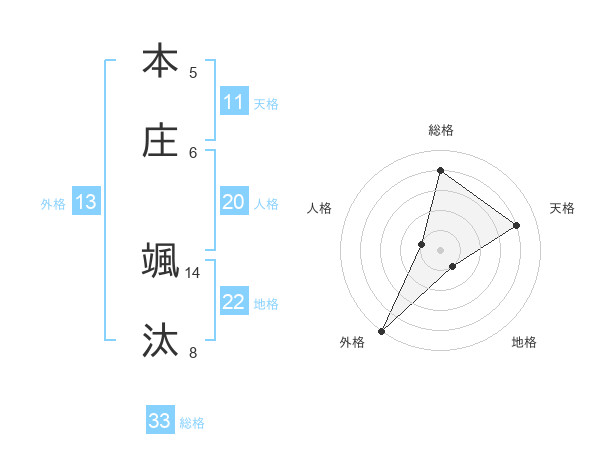 本庄 颯汰さんの総格は33画の4点!