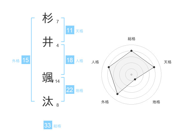 杉井 颯汰さんの総格は33画の4点!