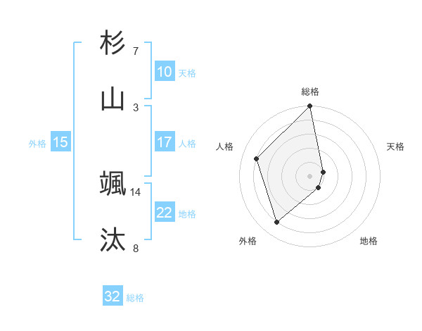 杉山 颯汰さんの総格は32画の5点!