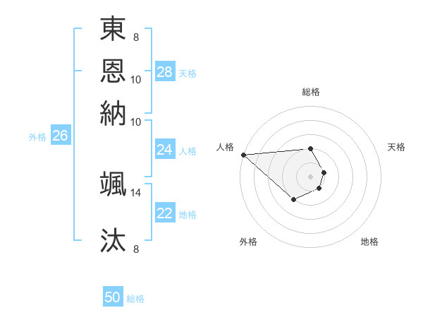 東恩納 颯汰さんを姓名の画数から五運を鑑定