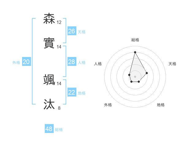 森實 颯汰さんの総格は48画の4点!