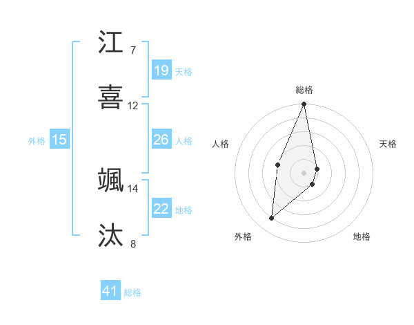 江喜 颯汰さんを姓名の画数から五運を鑑定