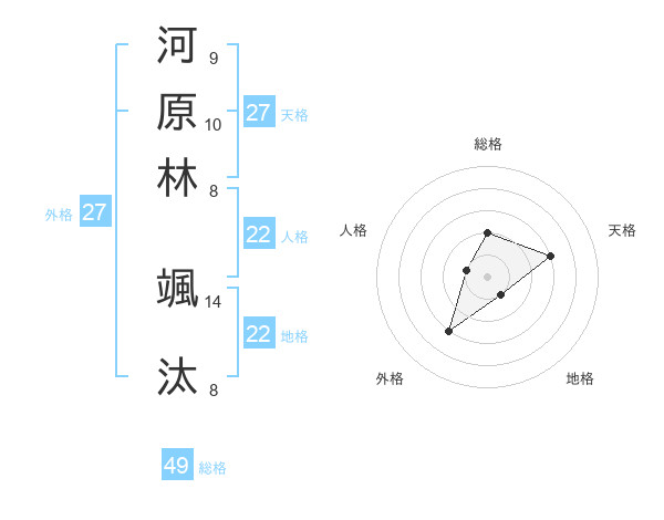 河原林 颯汰さんの総格は49画の2点!