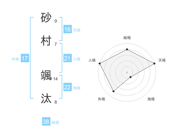 砂村 颯汰さんの総格は38画の4点!