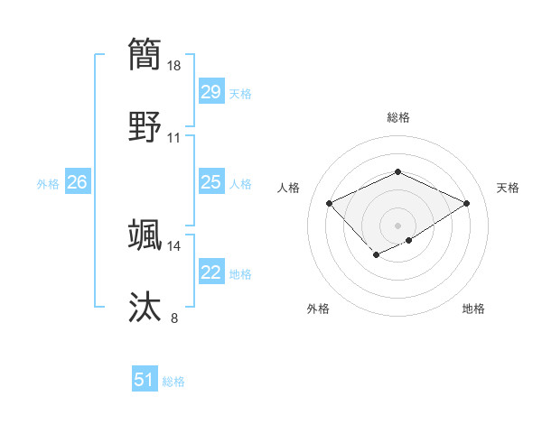 簡野 颯汰さんの総格は51画の3点!