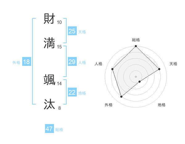 財満 颯汰さんの総格は47画の5点!