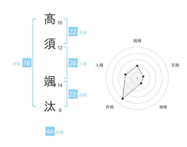 髙須 颯汰さんの天格は22画の1点!