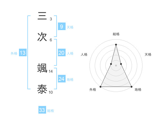 三次 颯泰さんの総格は33画の4点!