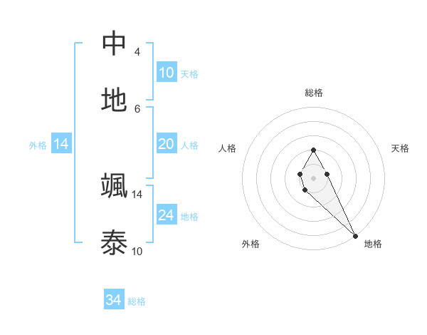 中地 颯泰さんの総格は34画の2点!