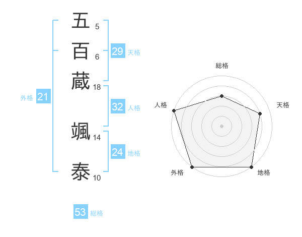 五百蔵 颯泰さんを姓名の画数から五運を鑑定