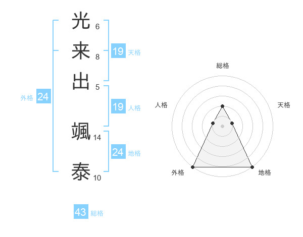 光来出 颯泰さんを姓名の画数から五運を鑑定