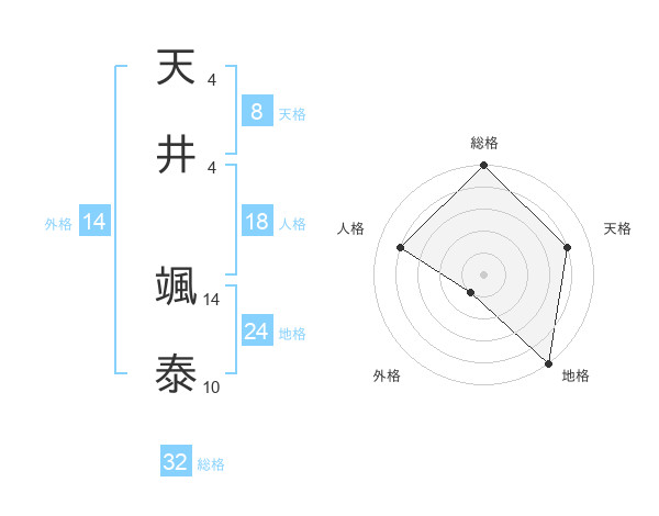 天井 颯泰さんを姓名の画数から五運を鑑定