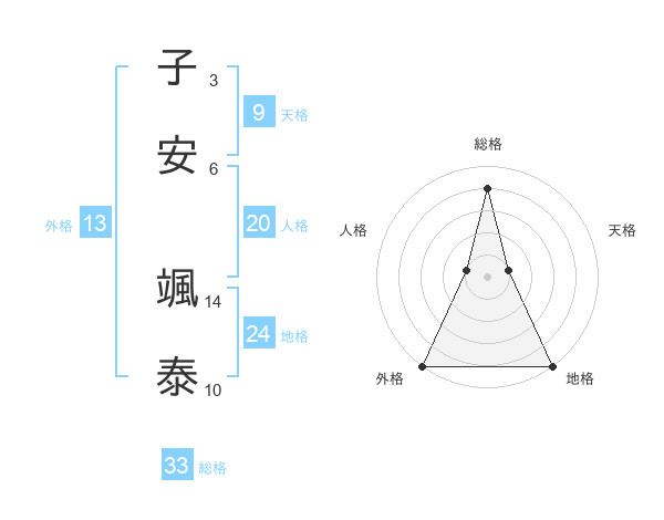 子安 颯泰さんを姓名の画数から五運を鑑定