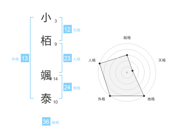 小栢 颯泰さんの外格は13画の5点!