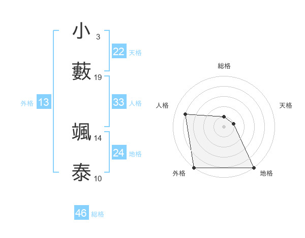 小藪 颯泰さんの天格は22画の1点!