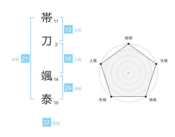 帯刀 颯泰さんの総格は37画の5点!