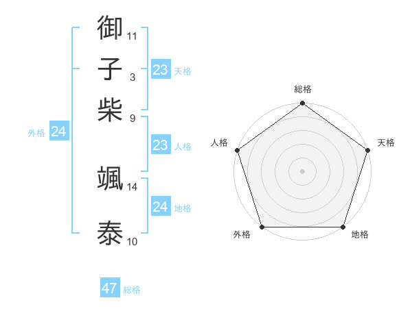 御子柴 颯泰さんの総格は47画の5点!