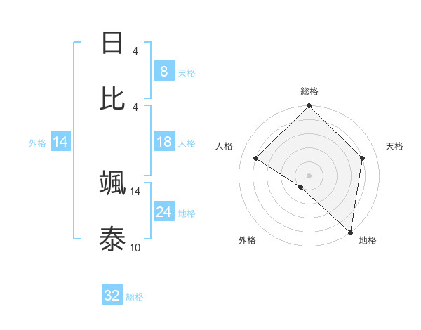 日比 颯泰さんの総格は32画の5点!