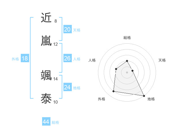 近嵐 颯泰さんの天格は20画の1点!