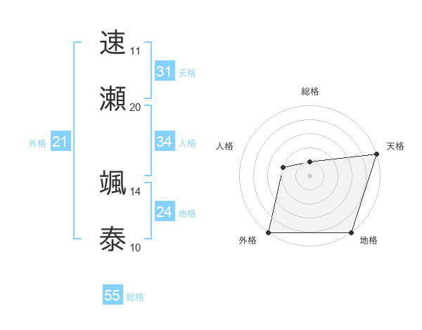 速瀬 颯泰さんの総格は55画の1点!