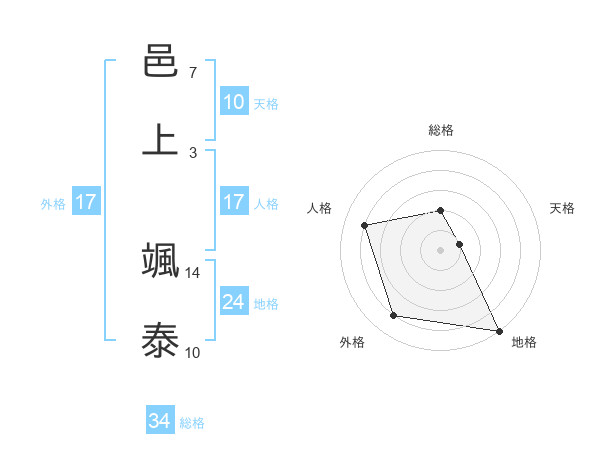 邑上 颯泰さんを姓名の画数から五運を鑑定